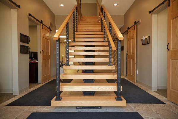 This office in Petoskey, Michigan needed a staircase that could fit into a small space without sacrificing safety or style. However, traditional staircases often make small spaces feel crowded and boxy. Our FLIGHT floating staircase was the perfect solution, creating an area that is open, airy, and beautiful.