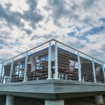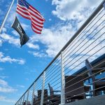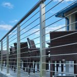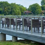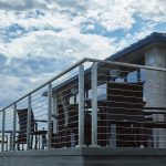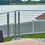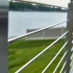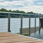 This gorgeous system was installed at a yacht club in Bellevue, Michigan, and shows off everything we love about rod railing. Its fluid, parallel lines blend with the view of the lake in the background while also complementing the gray tones of the deck. A sleek stainless steel handrail tops off the system — practically shining against the backdrop of lake and sky. This stainless steel rod railing system is simple, modern, and of the highest quality.