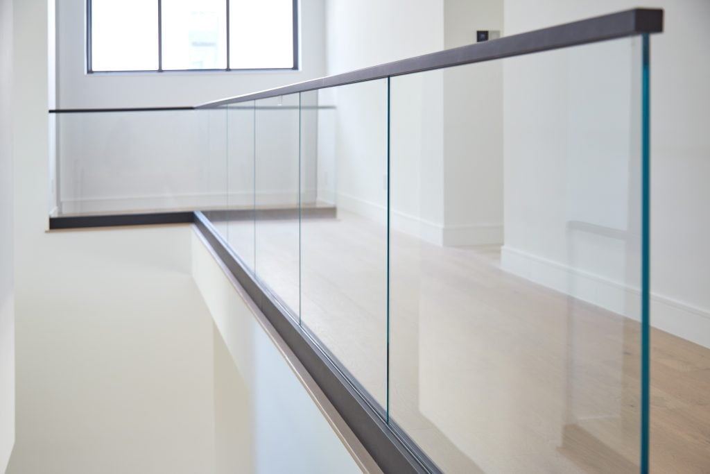 Indoor glass railing brings a feeling of openness and allows natural light to flow through your space.