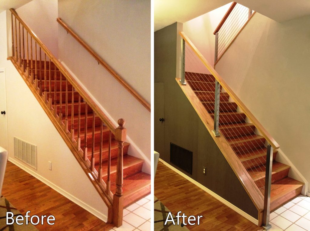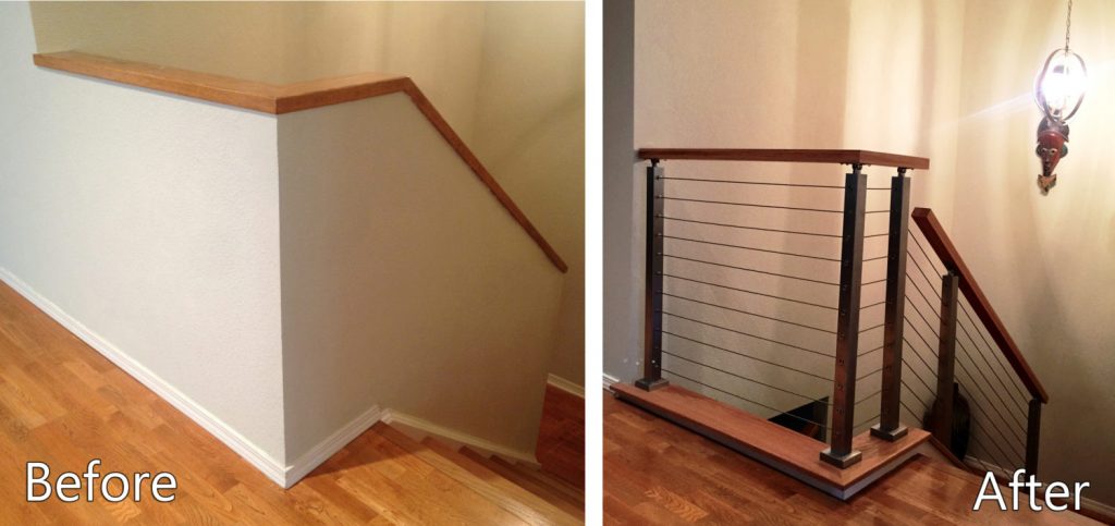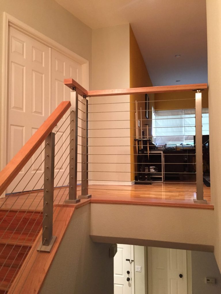 In some instances, customers use unique cable railing post combinations to achieve the desired style in their homes. For this project, the customer selected surface mount posts. However, because of the presence of knee walls and flat surfaces, the customer used both flat and angle foot posts. This allowed the customer to have a cable railing system with smooth transitions. In addition to the combination of angle and flat foot posts, the customer decided to use a post with three smooth sides as the base post at the bottom of the stairs. When you have design questions and requests, our friendly, experienced staff is happy to do everything possible to fulfill your needs. With a few simple photos and measurements, we can begin working to make your design dreams come true.