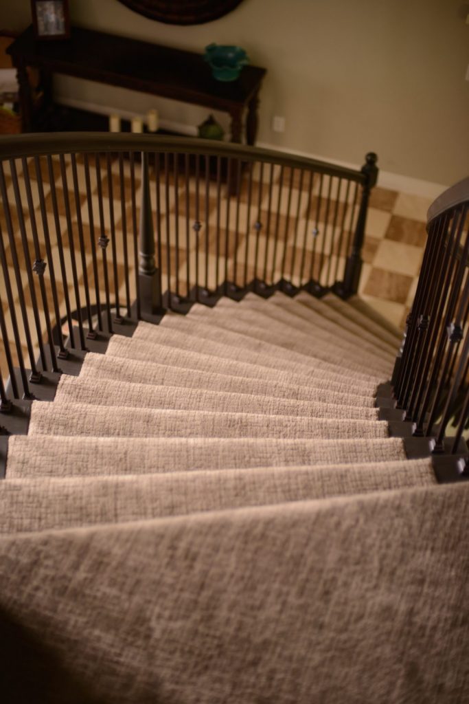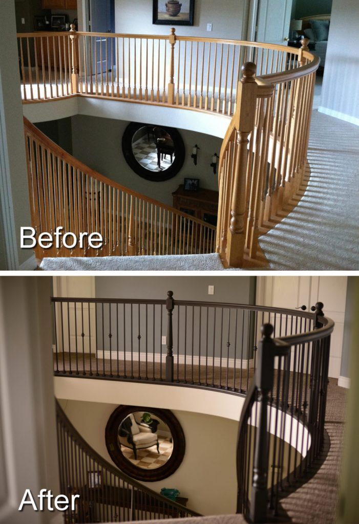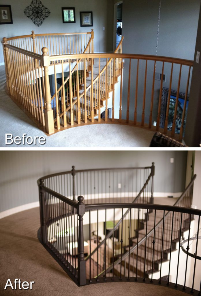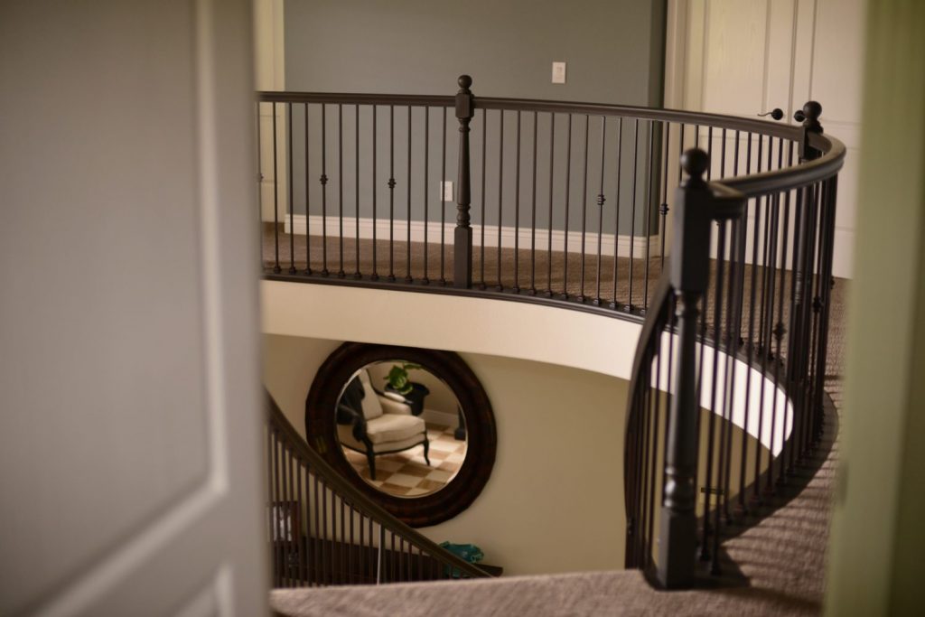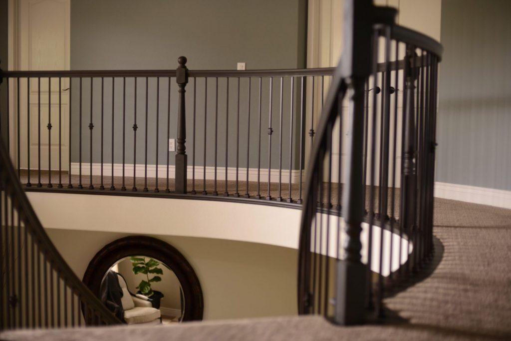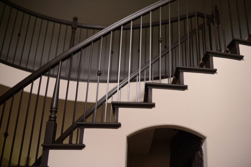 This home features railing that gently curves around the landing and down the stairs. For stairways that have such graceful features, elegant wrought iron balusters are an excellent choice. This customer selected a subtle blend of single knuckle and plain straight iron balusters. This gives the entire stairway a polished appearance. You can take a look at our vast array of wrought iron balusters that can transform your stairway into an elegant railing system. In addition, you can send us photos of your completed staircase transformation. We can’t wait to see the finished project.