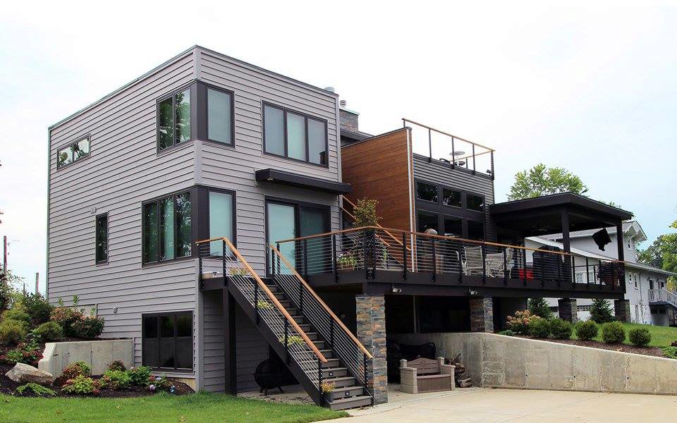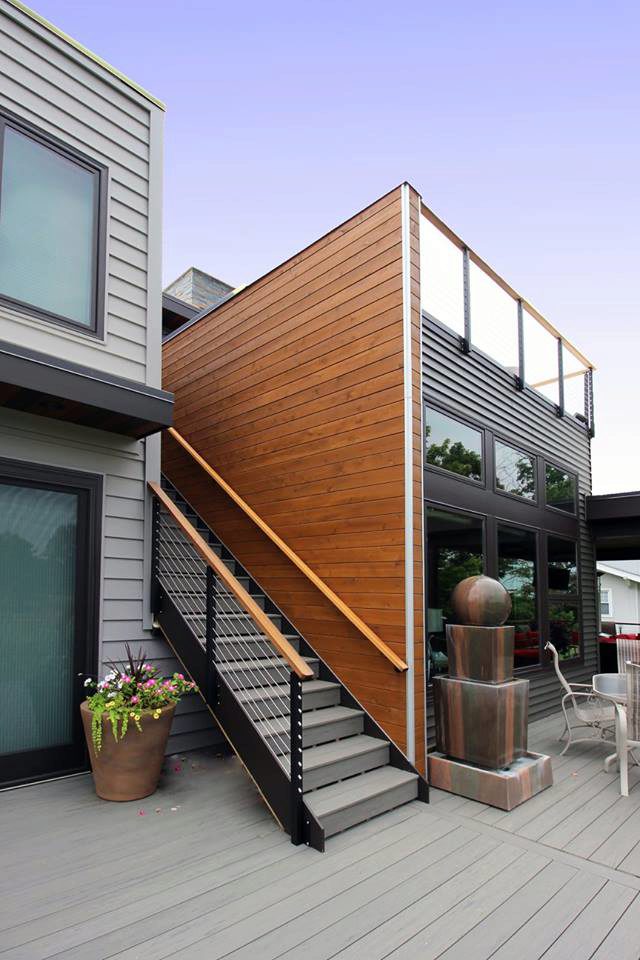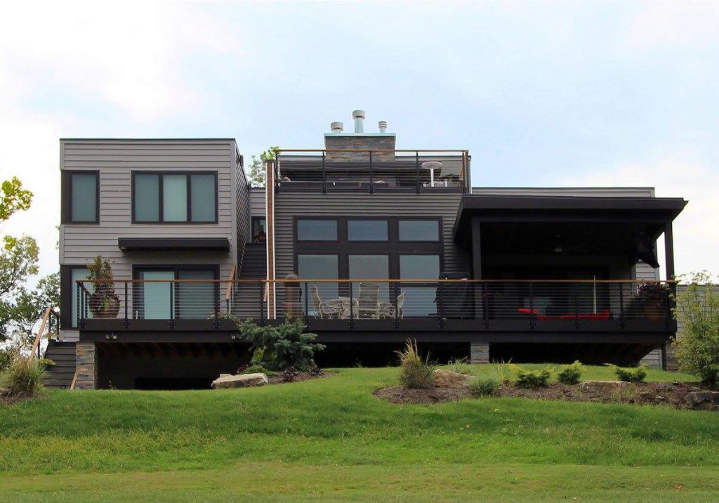 This modern home features many contemporary design features like rectangular rooms and decks. These features compliment cable railing systems. Furthermore, the decks serve as entertainment spaces with fantastic views. This makes them a perfect place for cable rail. The practically invisible cable allows you to enjoy the view. In addition, the railing provides ample support for the deck. If you have an exterior entertainment space, consider using cable for your railing. If you do select cable, you’re sure to enjoy the views and breezes that your new railing allows into your space.