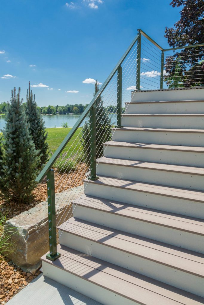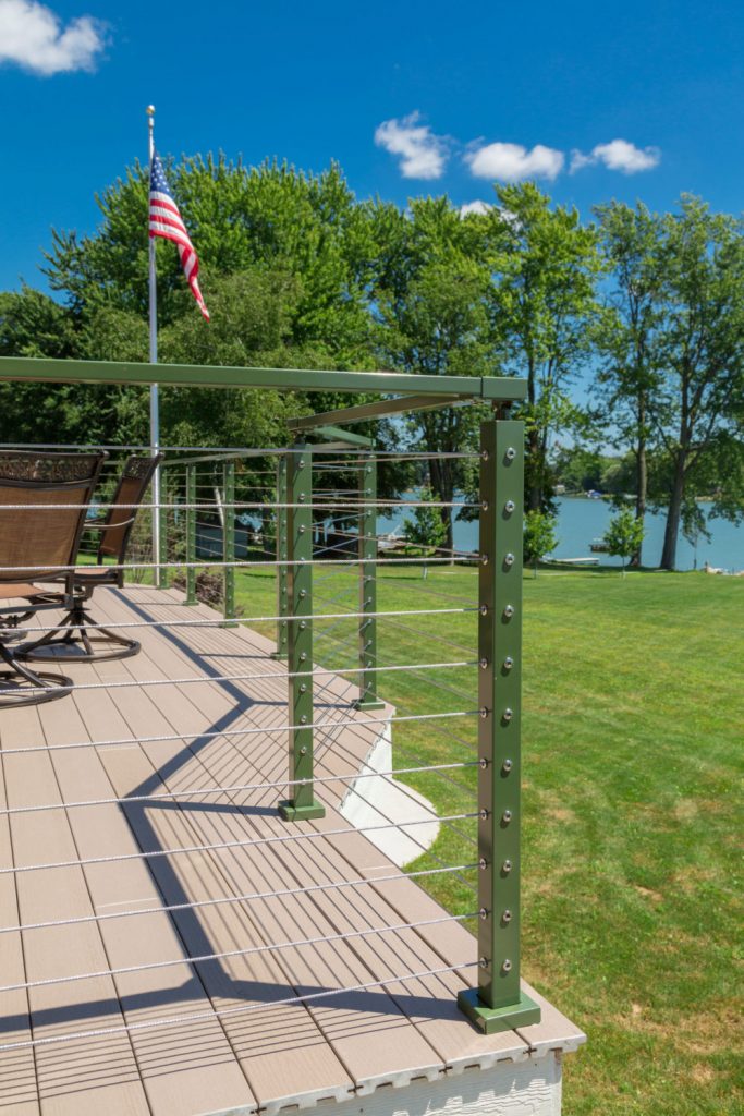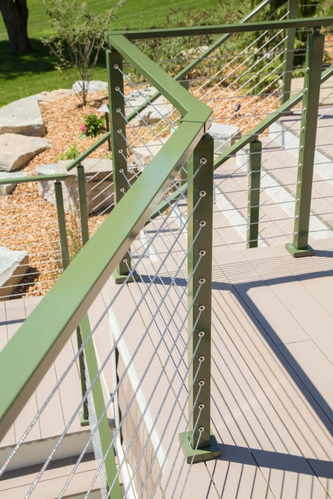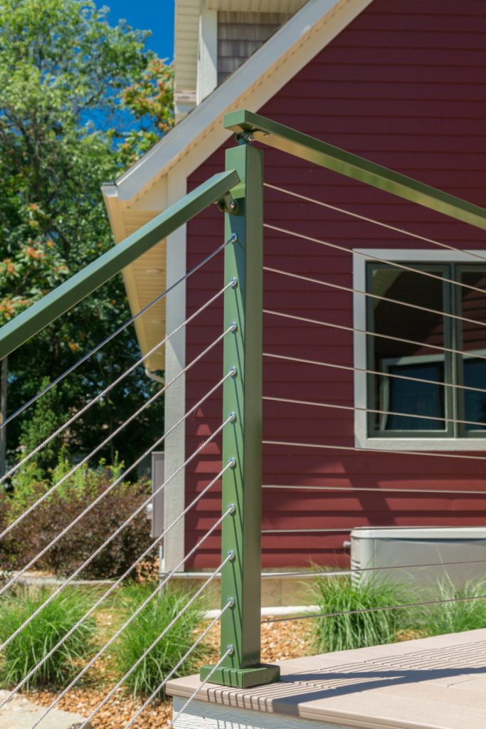 At StairSupplies™, we are proud of the fact that our cable railing system is adaptable. We offer many different cable railing post styles that vary from their base plates to their tops. Furthermore, we have a vast array of powder coat options so you can find the perfect color for your system. This customer selected our green powder coat that beautifully accents the red home. Selecting a unique powder coat puts your creativity on display and gives you a system that stands out from the crowd.