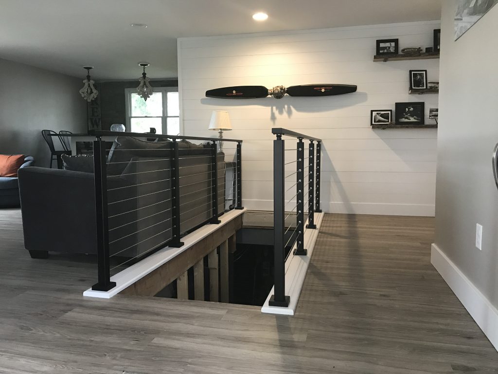 When properly staged in a well-designed home, cable railing becomes more than a beautiful safety feature. These cable railing creations transform into works of art. In this project, the customer used the sets of cable railing to frame the airplane propeller on his wall. This makes the cable railing a part of the entire layout of the living space. The black posts compliment the monochrome style of the room. In addition, the metal handrail adds an extra-modern touch. Put together, the stylized room is ready to impress.