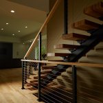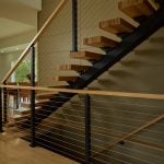 Installed in a home in Garrettsville, Ohio, this FLIGHT floating staircase shows off our beautiful Ash Thick Stair Treads. Light color and a highly defined grain pattern makes these treads pop against our black aluminum cable railing posts. Better still, the treads helped these owners keep their costs low, as Ash is a budget friendly alternative to more expensive wood types.