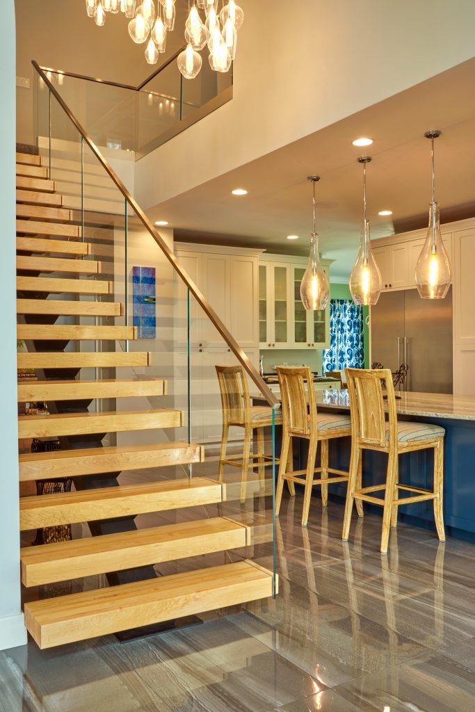In this amazing Floridian house, the homeowners were interested in a railing system that not only worked in, but emphasized, their open space. With huge floor to ceiling windows, the low iron glass lets the natural light into the entire house. The Vedera FLIGHT system ties together the first and second floor with its unique, minimalistic structure. Each tread slice conceals the glass fasteners, creating a system that seems to flow together.