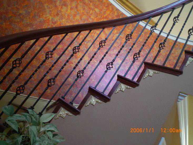 StairSupplies™ Iron Balusters are so versatile that they can be mixed and matched as much as you like! This project features our Scroll Series Iron Balusters and our Twist Series Double Basket Balusters. Incorporated with beautiful turned newels and a bending handrail, these balusters will not fail to impress. Click here to view your entire Wrought Iron Baluster offering.