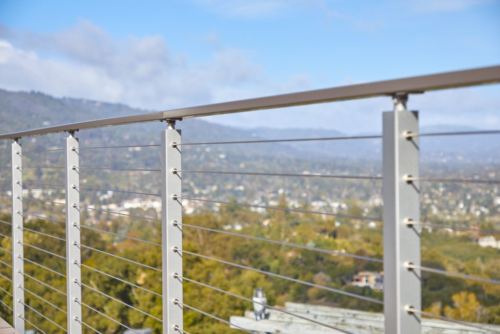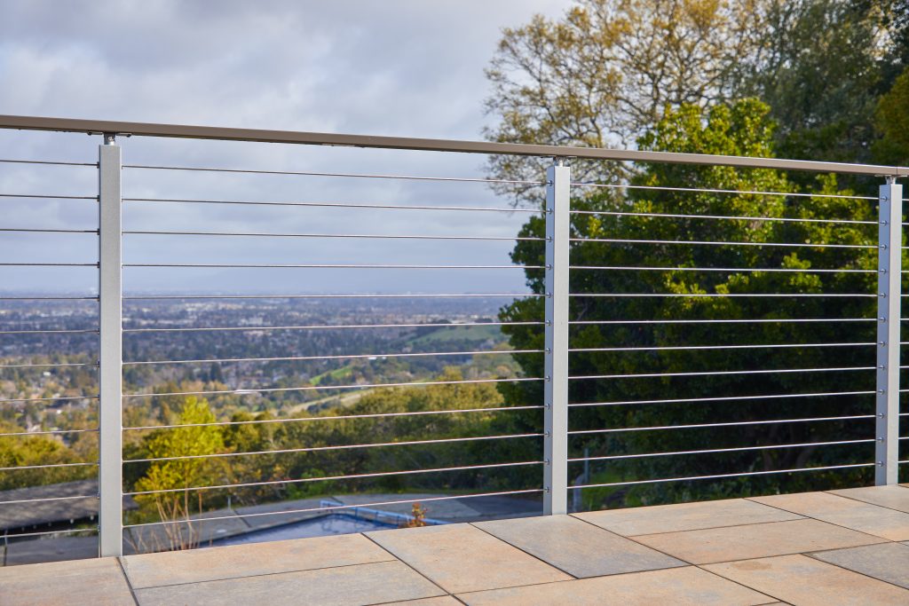 For this larger deck project, the homeowners wanted an extremely strong and durable modern railing solution that didn’t compromise the waterproofing or deck tiling throughout the project. The design specifically incorporated a blocked out fascia board, to which the posts would mount. This project uses Side Mounted Posts that create a 42″ tall cable railing system. Each post is constructed from aircraft grade aluminum and is powder coated with a durable Fluoropolymer Speedboat Silver finish. The long lines and corners of the deck edges go perfectly with the vertical lines and single post corners that the Side Mounted Posts present. As always, the cable railing provides a clean, unobstructed view.