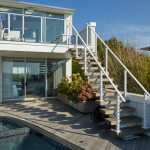 This project located in West Hampton, New York is located right up on beach. Surrounded by salt water, and close to chlorine from the pool, the project demanded a product that could withstand an aggressive environment. The customer choose Viewrail’s exterior rated FLIGHT system, which utilizes Endurance Treads and a Fluoropolymer Apollo White stringer. A Fluoropolymer powder coat is specifically designed to withstand harsh environments for years and years. When paired with the thermally treated Endurance treads, this becomes an extremely durable exterior floating stair system.