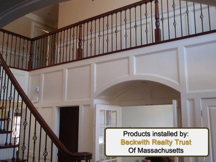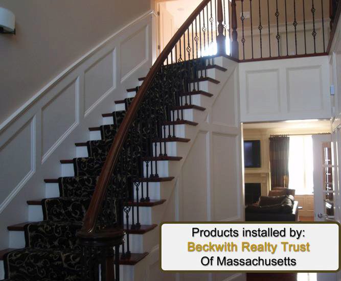 Featuring StairSupplies™ Regency Series Box Newels, this stairway perfectly showcases the need to have strong, stable newels at all turns on a stairway. If a stairway has multiple, non-continuous sections like this one, it must have a newel at every intersection in order to maintain the stairway’s structural integrity. Click here to view your entire Turned Newel offering.