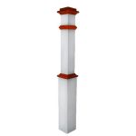 This staircase is an excellent example of a blended stair railing system. The blended style showcases both white and stained products. In this project, the customer selected white risers and balusters, with a white newel body. The handrail, treads, and trim of the box newel offer stained accents to the staircase.