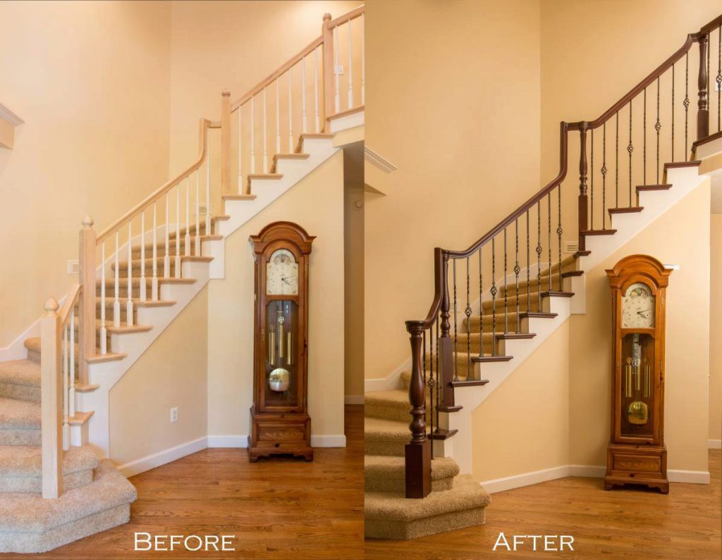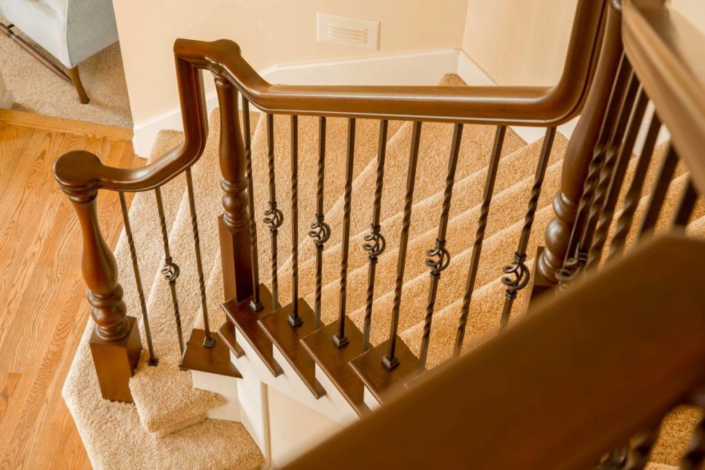 When a local customer called requesting custom turned newels, handrails, and wrought iron balusters, we jumped at the opportunity to help elevate the look of their staircase. Because of the curve of the stairs, this project required multiple wood handrail fittings. The primary fittings used here are the Rise Straight Goosenecks with Tandem Caps. These fittings allow the handrail to make graceful transitions as it rises and curves. To give this staircase the final, elegant touch, this customer used Twist Series wrought iron balusters. As you can see in the photos, the overall transformation of the stairway was spectacular!