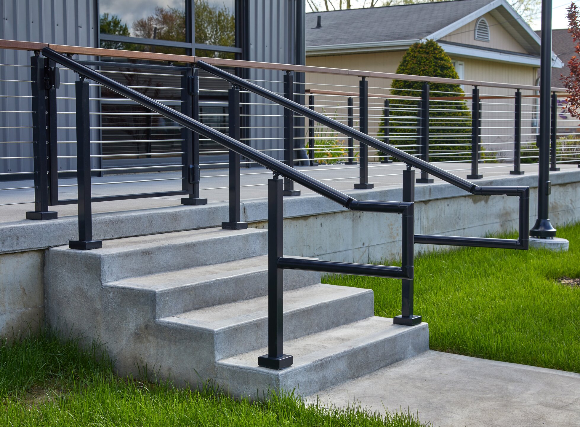 1-1/2″ handrail is designed with safety in mind. This is commonly used in commercial and residential settings when a guardrail is required or desired at 42″ and an extra handrail is needed at the 34-38″ mark for handrail code. 1-1/2″ is the most common form of this type of handrail and it is often welded onsite. At Viewrail, we carry a variety of fittings that will allow you to make your round handrail completely continuous or to have returns if so desired. The possibilities are almost completely endless with this system.