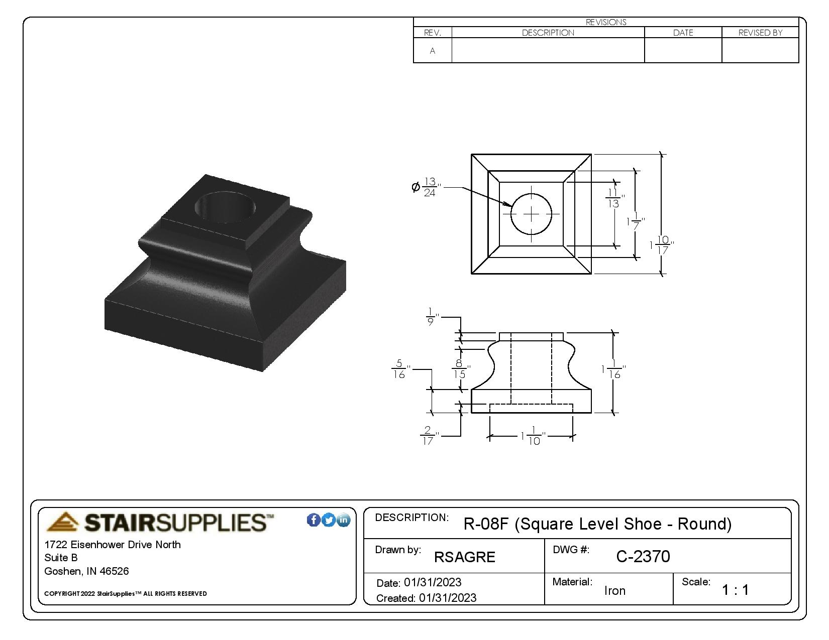• For 1/2″ round iron balusters on level surfaces to cover iron baluster mounting holes