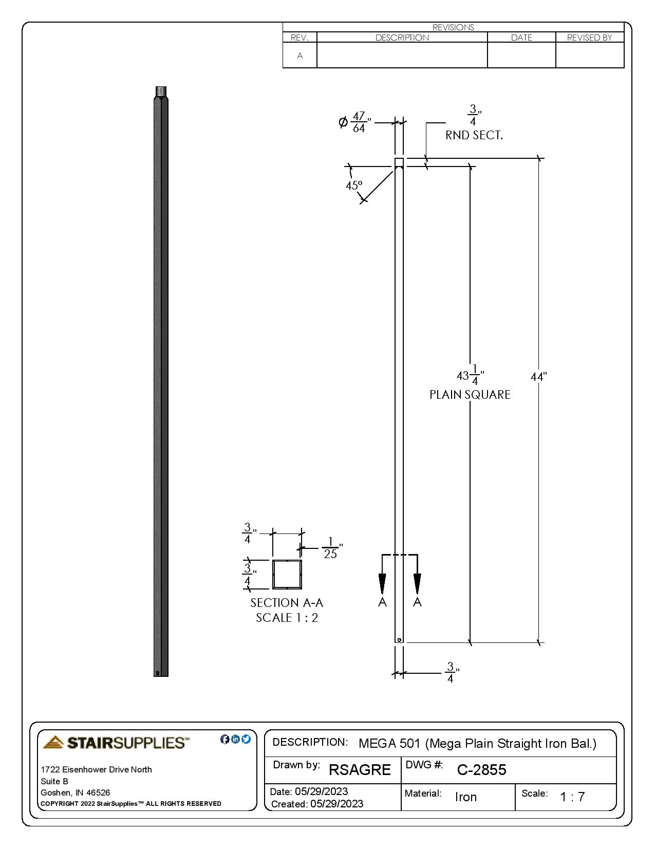 - Hollow Balusters available in Black, Satin Black, Antique Bronze, Oil Rubbed Copper and Oil Rubbed Bronze