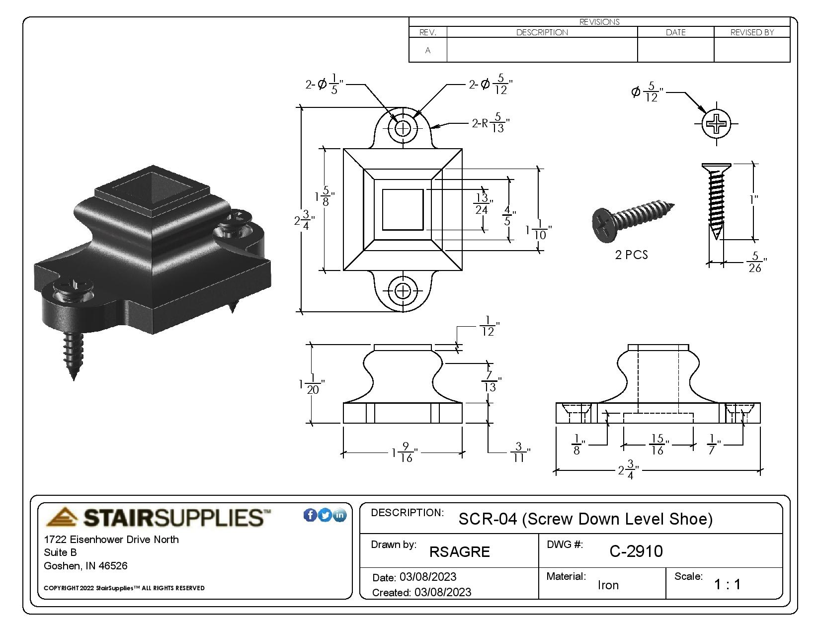 2910 1/2″ Screw Down Level Shoe