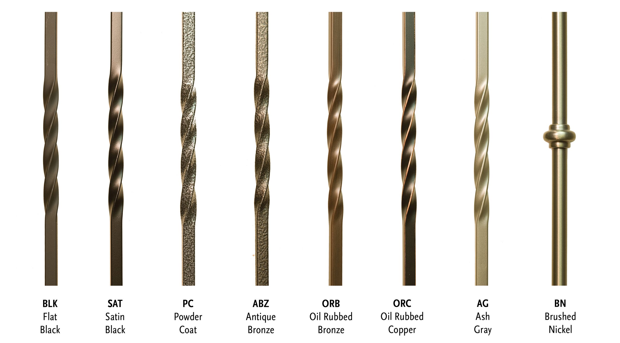 - Hollow material available in Black, Satin Black, Antique Bronze, Oil Rubbed Bronze, and Oil Rubbed Copper