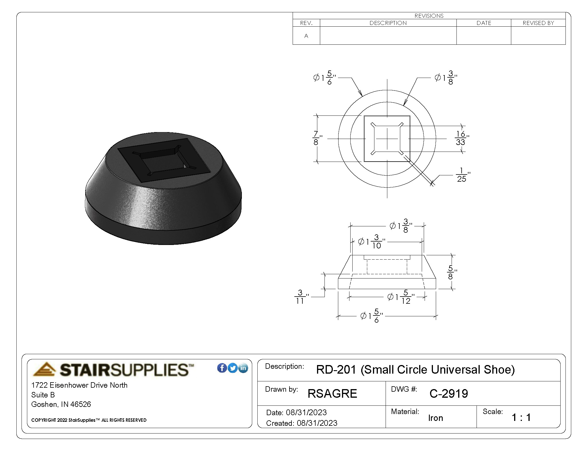 - Fits either a 1/2″ or 9/16″ square iron baluster using a flexible plastic insert