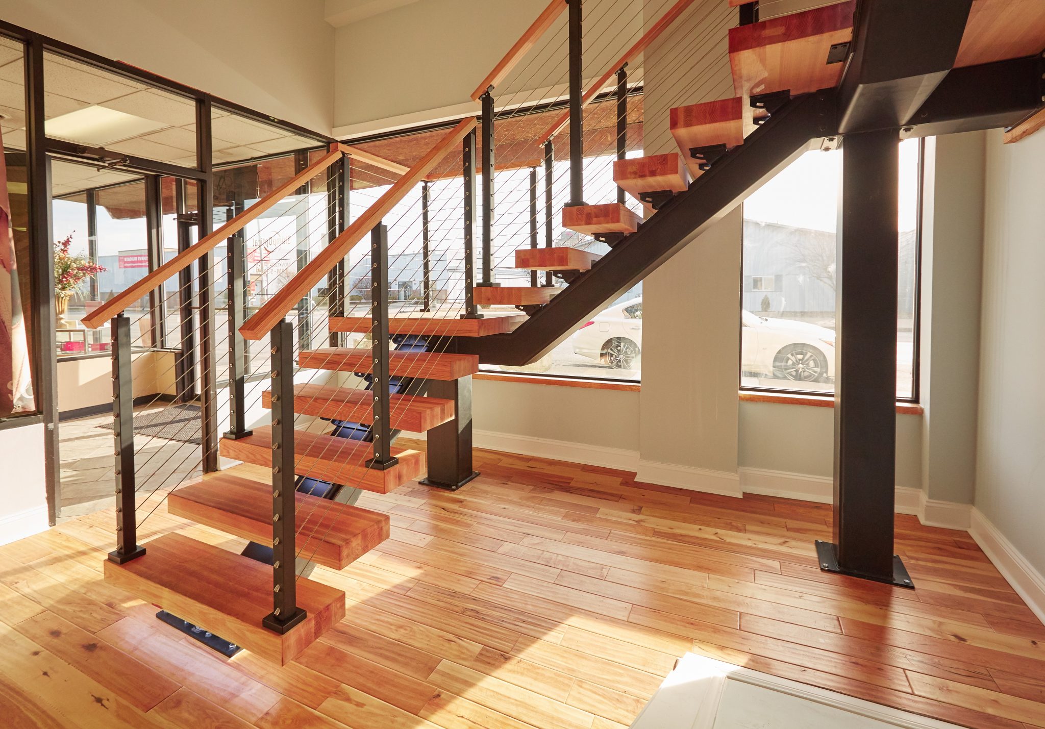Pair 4” Thick Stair Landing Platforms for Viewrail Flight floating stairs with the 4” Thick Stair Treads for a coordinated design.