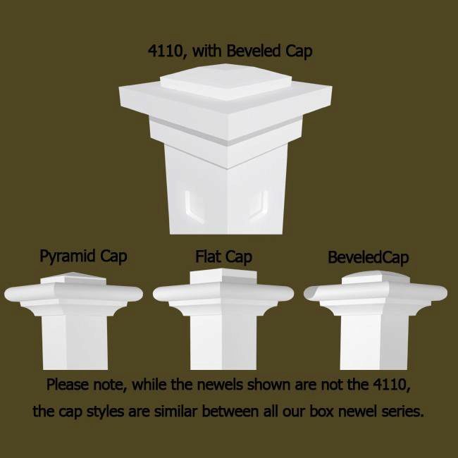 The cap for this box newel is sent unattached to the newel body, allowing easy access for mounting handrail. Then, after handrails are attached, the cap can be secured on-site by applying a bit of wood glue and finishing nails for increased strength.