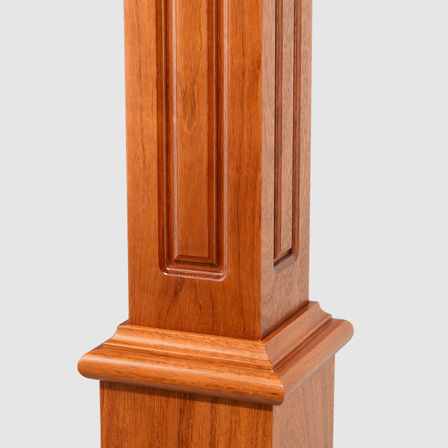 The 4621 Raised Panel Box Newel combines a detailed, solid top with a sturdy hollow base. Beautiful raised panels are routed into the wood species of your choice, including options such as Red Oak, Maple, Brazilian Cherry, Hickory, and many more. This 5” square box newel offers the style of our larger box newels, but has a smaller footprint, making it perfect for smaller homes or offices. Increase your style options by combining the 4621 with other newels in our Raised Panel collection.