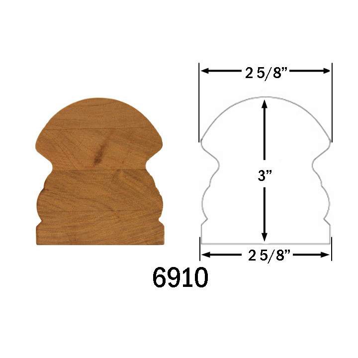 6910 Handrail is 2 5/8” at its widest point & 3” at its tallest point. The 6910 profile is large yet sleek. The proportions are perfect and it looks superb in any home or business.