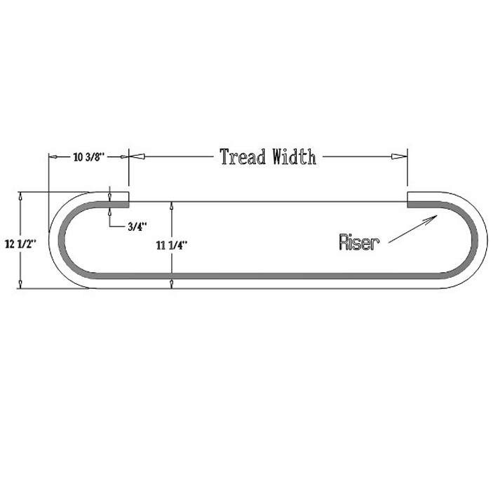 Double Rounded End starting steps are needed when both sides of the starting step are exposed. This style requires a special measurement called the “throat cut”, which you will need to provide when you place your order. To find the throat cut, measure the length between the inside of the Left and Right Rounded End. Each Rounded End adds 10 ⅜” per side.