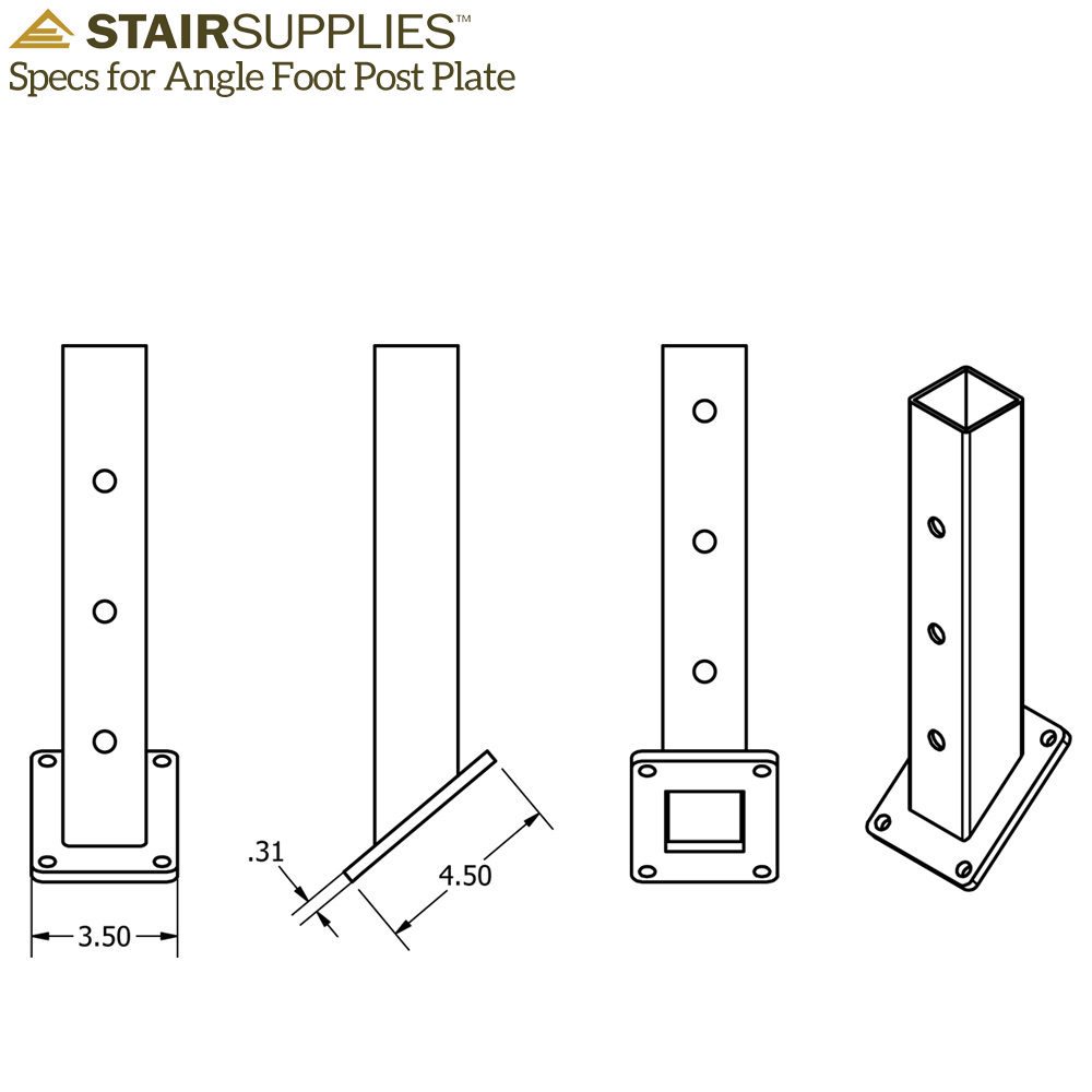 Mounting feet come with 4 holes (6 holes on “B” posts) for 3/8″ fasteners. The handrail bracket also comes with 6 pre-drilled holes to secure the handrail.