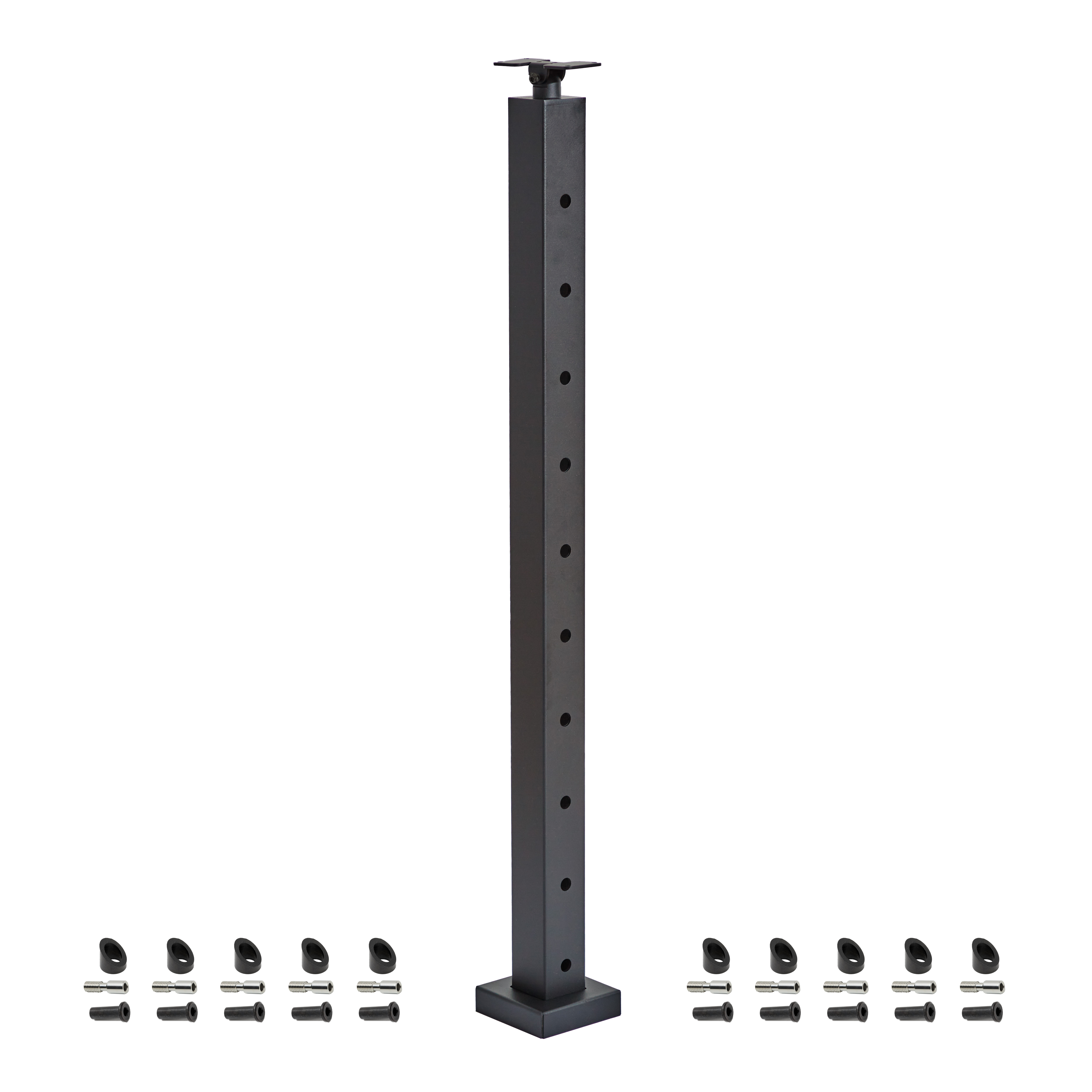 The Express angle end post from StairSupplies is designed to bring your angled runs of Express railing to an elegant finish every time. Each 36” post comes pre-drilled with 1/2″ holes on both sides. The 1/2″ holes allow the posts to accommodate most standard stair angle without the cable touching the post. An angle above 40 degrees may make contact with the post holes depending on the post placement. These posts are constructed out of the same aluminum as our Signature product line and powder coated with a matte black finish. Like the rest of our Express line, these posts are designed to be in your hands as fast as possible.
