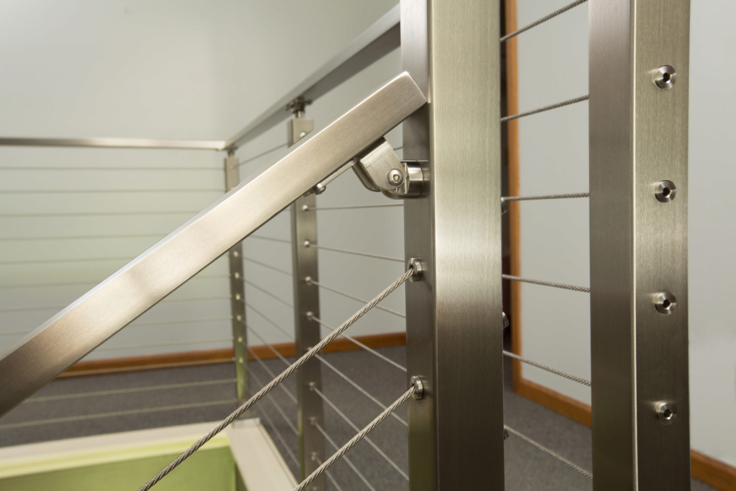 The Post Transition Handrail Bracket is used when transitioning from a 36″ tall system on an angle, to a 39″ or 42″ tall system on a balcony or landing.