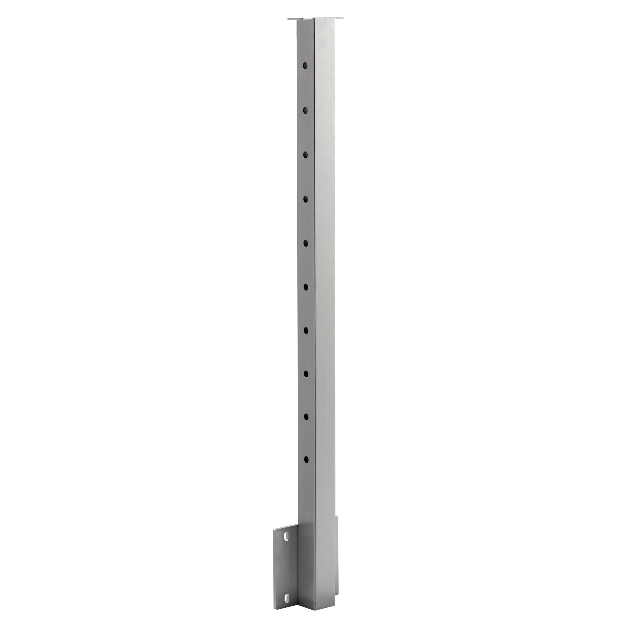 “S” – The “S” post is shipped without any holes pre-drilled in the post itself (handrail bracket and foot still come pre-drilled). Select this post if you have an application where rods are not necessary but you still want to run handrail, or for a custom application where you want to drill the holes yourself.